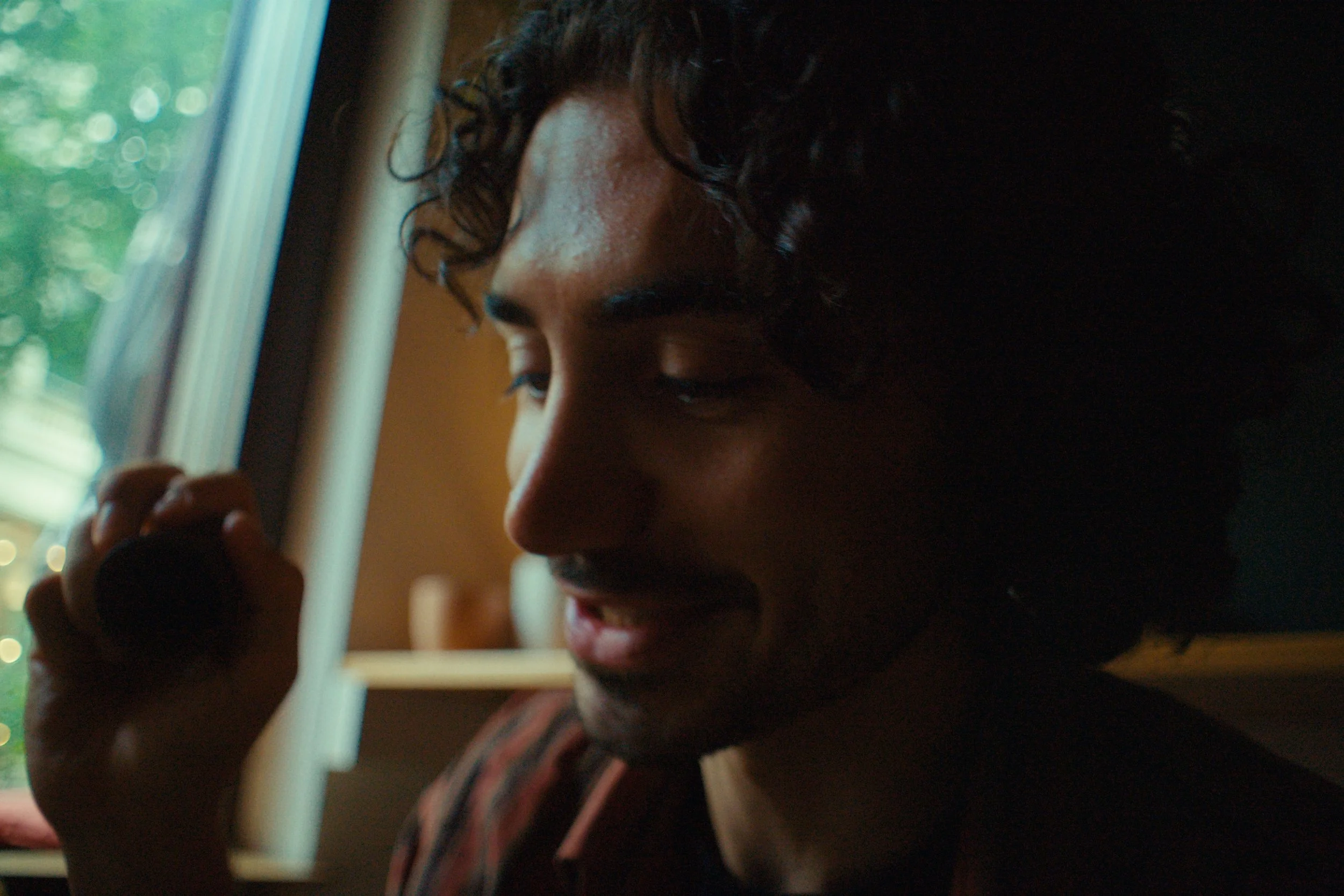 A short clip within a narrative about last night at a café — “Drei der Münze.”